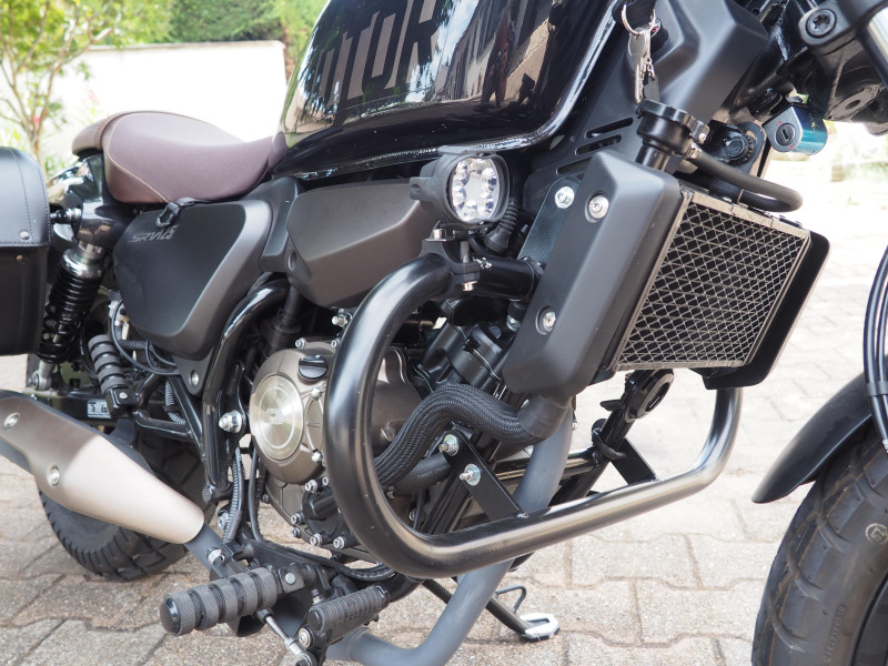 Dieser Schutzbügel ist für die Aufnahme zusätzlicher Fußstützen konzipiert und sorgt so für zusätzlichen Komfort auf langen Fahrten.